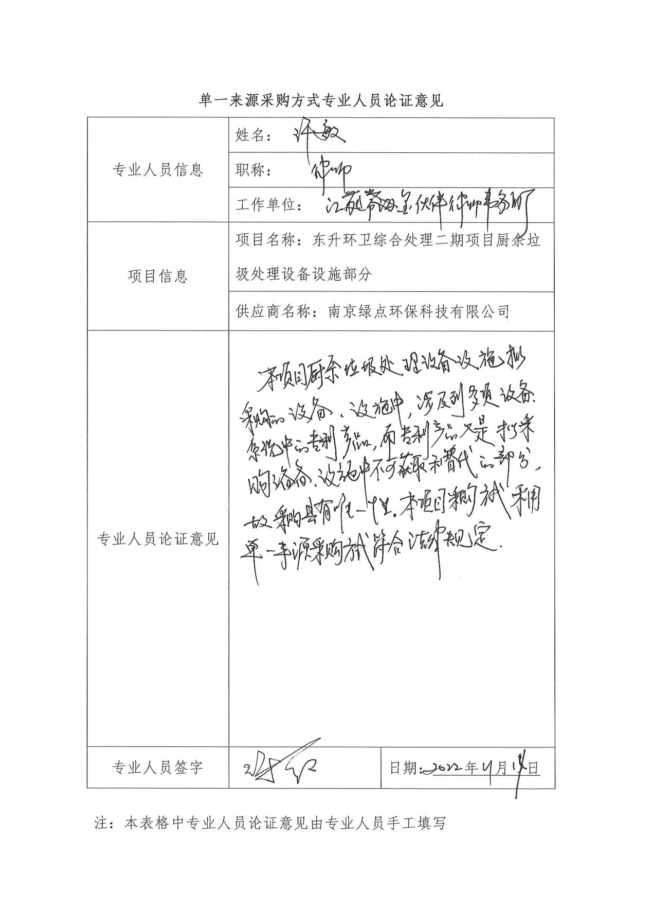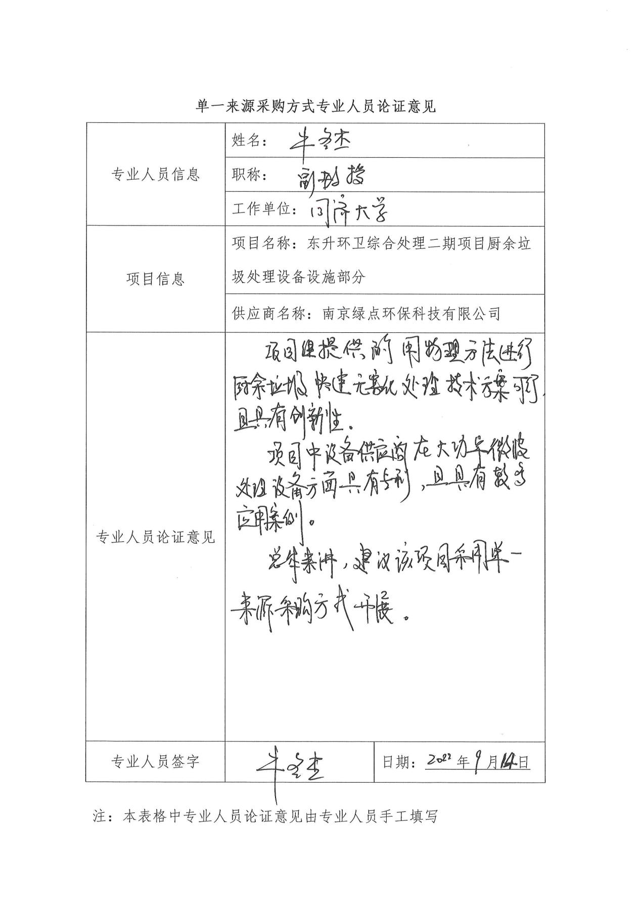 项目名称: 东升环卫综合处理二期项目厨余垃圾处理设备设施部分